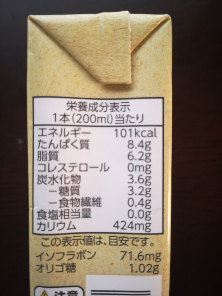 これは、豆乳の栄養成分表示です。